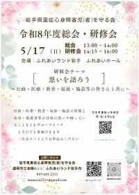 - 昭和50年に設立した岩手県重症心身障害児(者)を守る会は皆様方に支えられて設立50年をむかえました。これを記念し、記念式典と研修会を開催いたします。
